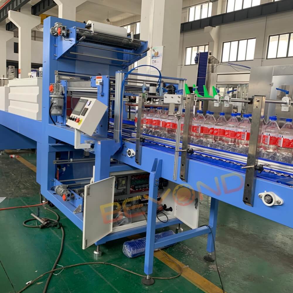 It counts, groups, wraps, and shrinks the bottles into compact and visually uniform packs using a heat tunnel and servo-driven control system. Compared to traditional carton packaging, this method reduces costs, saves space, and enhances presentation for retail and logistics.