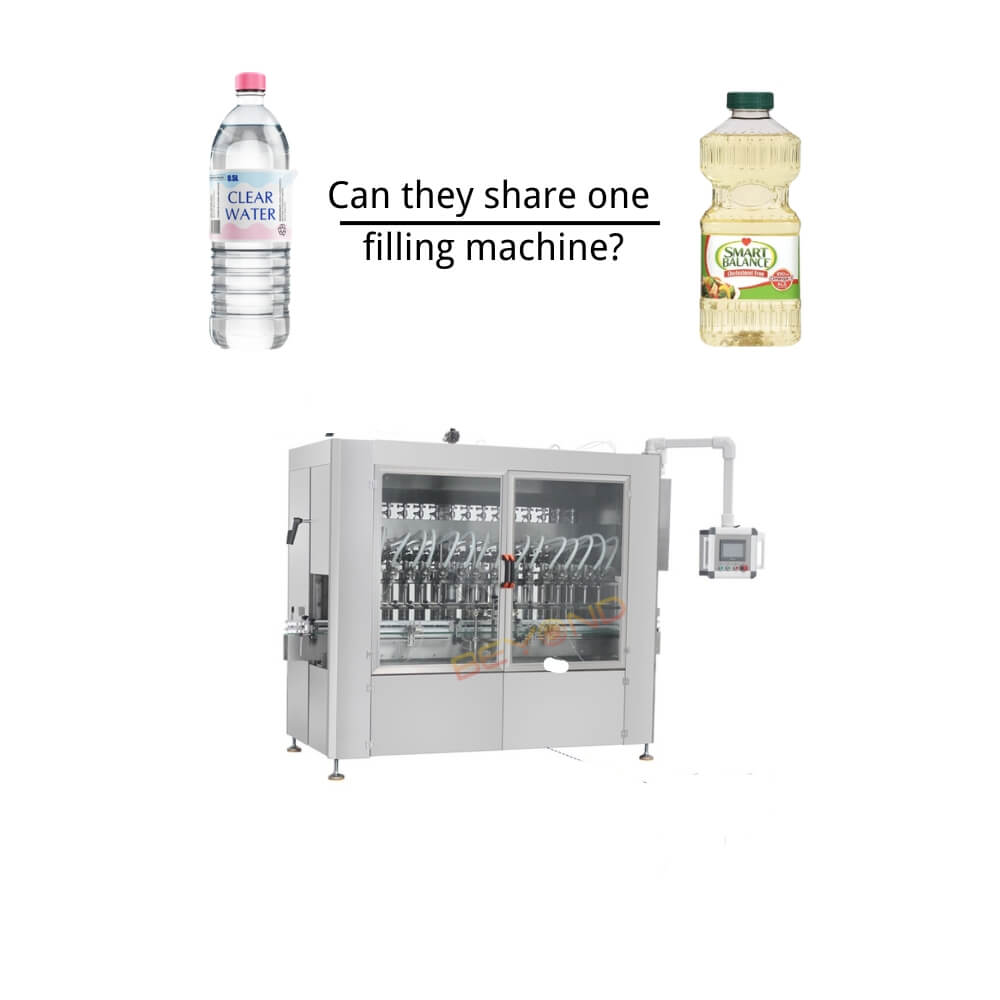 Some edible oils need to be filled at elevated temperatures (e.g., palm oil), while water is usually filled at ambient or even chilled temperatures. Sharing a filling system would require wide temperature tolerance in pumps, valves, and pipelines.