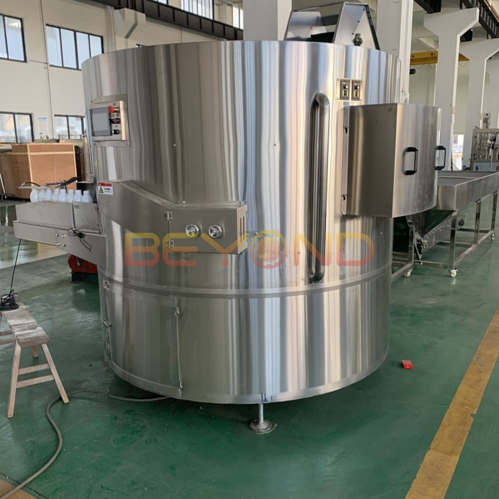 This machine not only reduces the need for manual labor, but it also minimizes the risk of errors and ensures that the bottles are correctly aligned, reducing the chances of jams and bottlenecks on the production line.