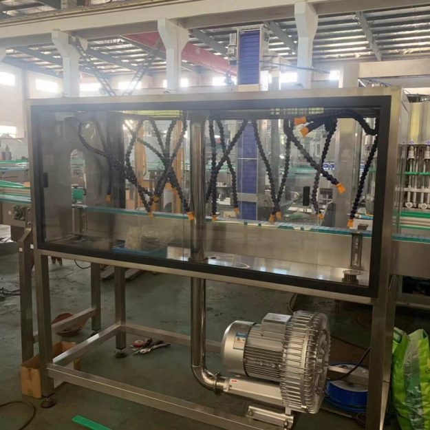 The air knife dryer uses the large air volume generated by the blower to powerfully blow off/dry the water droplets outside the bottle to achieve the drying effect, thereby preparing for the next step of printing, labeling, labeling and other packaging.