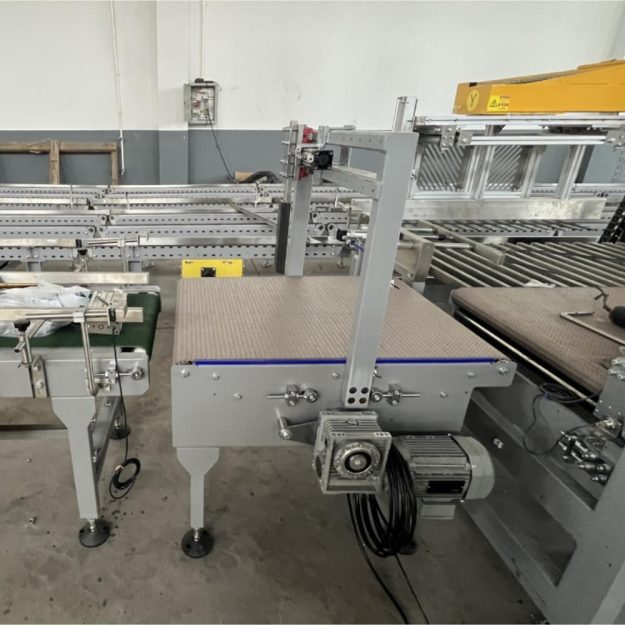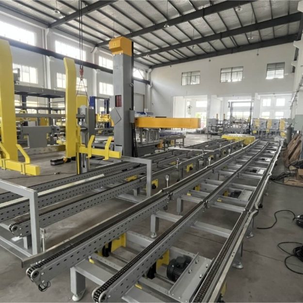 2. Устройство вывода поддонов: когда поддон достигает количества слоев штабелирования, подается сигнал для выталкивания твердого поддона из штабелирующей части. Твердый поддон отправляется в назначенное место через конвейерную ленту для удаления.