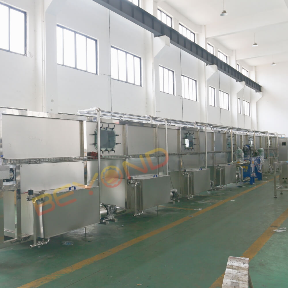 Для обеспечения безопасности, простоты обслуживания и профессиональной планировки завода наш пастеризационный туннель оснащен боковой рамой для кабельных каналов, часто называемой рамой для выравнивания проводов по краям.