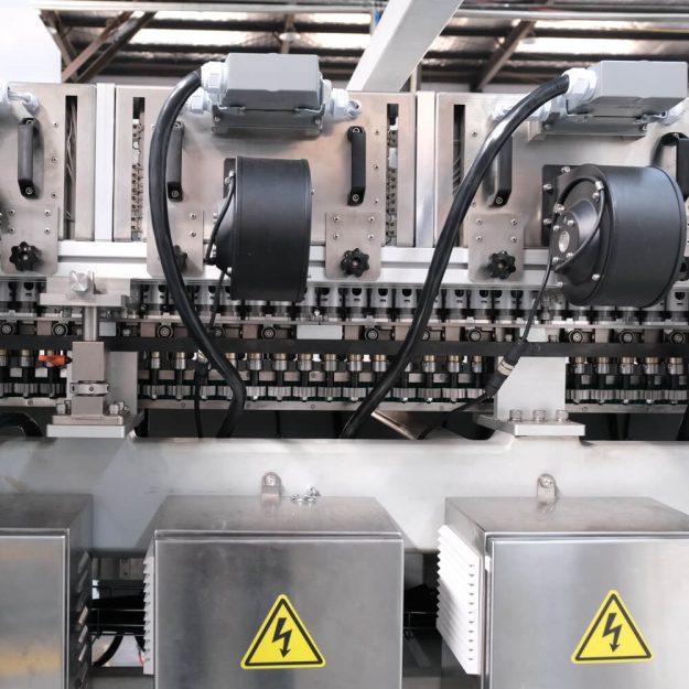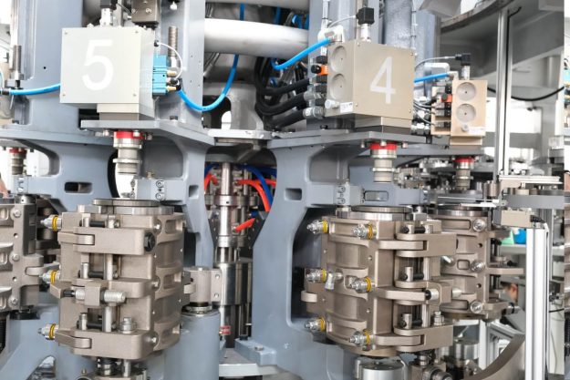 Специальный манипулятор доставляет нагретые заготовки к формам по определенной кривой кулачка. После предварительного вытяжения и раздувания заготовка раздувается до формы бутылки под действием сжатого воздуха высокого давления. Специальный манипулятор отправляет готовую бутылку по определенной кривой кулачка.