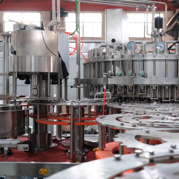Бутылки, изготовленные методом выдувания, транспортируются к наполнителю с помощью звездочного колеса. После поступления в наполнитель бутылка удерживается захватом подъемного цилиндра и поднимается и опускается под действием кулачка. Наполнитель использует гравитационный способ наполнения. Горлышко бутылки поднимается, открывая наполнительные клапаны, и начинается наполнение. Когда продукт поднимается и закрывает отверстие для возврата воздуха, наполнение заканчивается. После наполнения горлышко бутылки опускается и покидает наполнительный клапан.