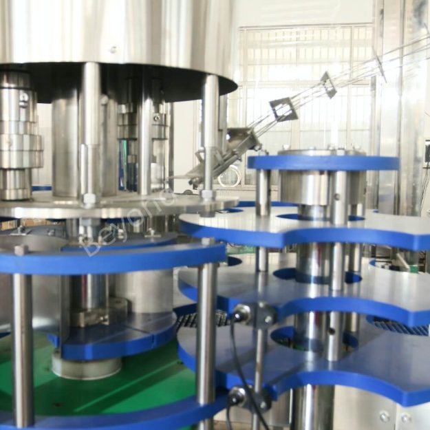 После точного наполнения бутылки автоматически перемещаются в укупорочная станция, который обеспечивает постоянный крутящий момент для герметичного и долговечного уплотнения.