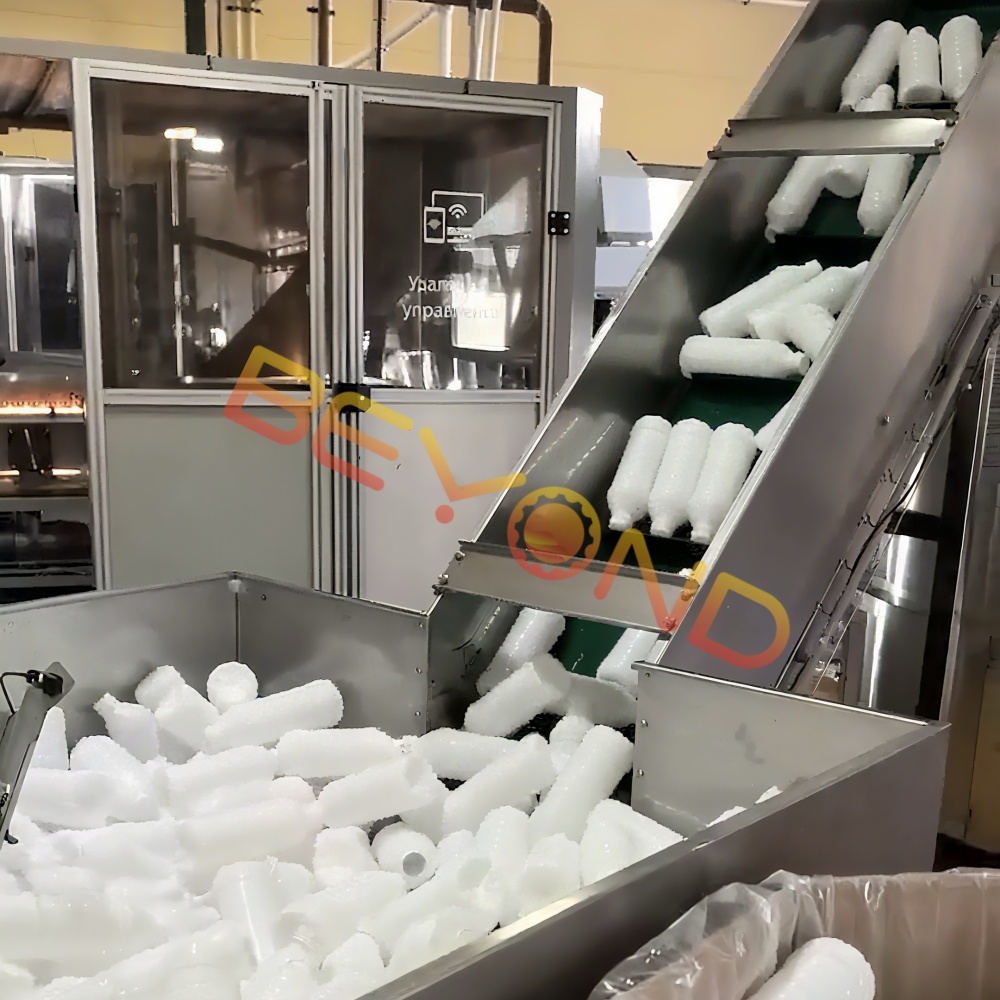 Время простоя и непредсказуемая пропускная способность: Нестабильность ручного процесса приводила к незапланированным простоям и нестабильной производительности, особенно при работе с легкими ПЭТ-бутылками, которые были склонны к нестабильности.