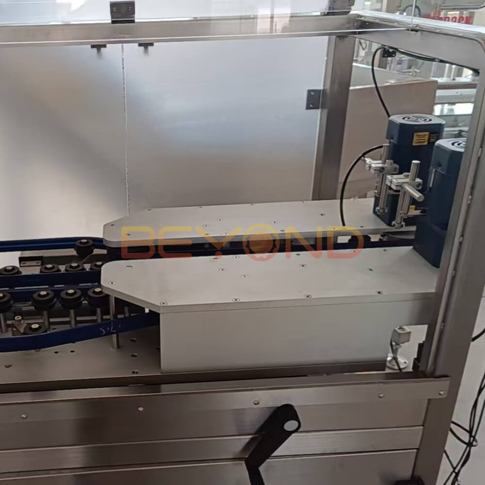 📌 Стабильное и точное позиционирование бутылок – бутылки идеально выровнены для процесса розлива.